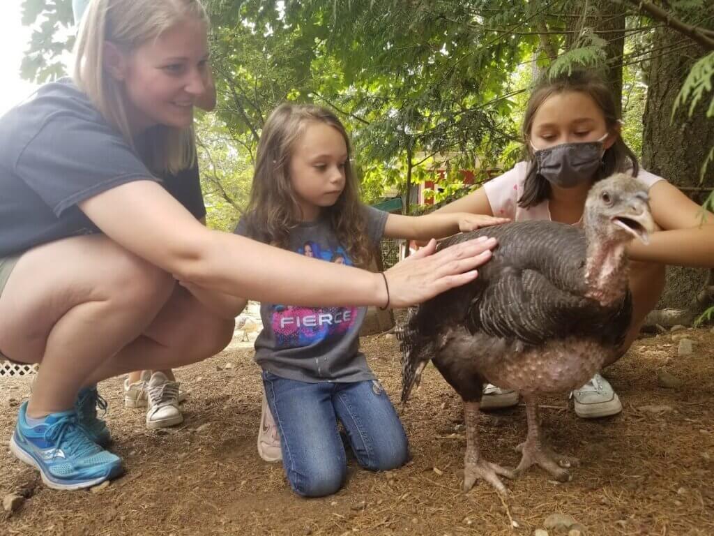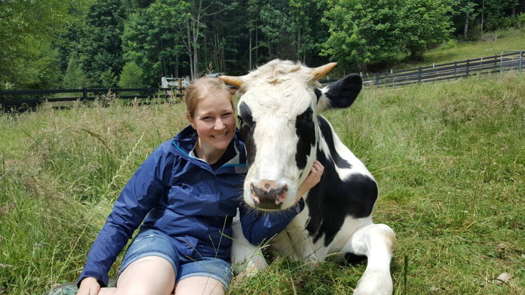 In addition to virtual field trips to Pasado’s, Malorie has organized an upcoming in-person trip to the sanctuary for 135 kindergarten students. Her school is in the suburbs, so this will be the first time many of them connect with farmed animals. She displays photos of the sanctuary’s animals around her classroom and talks about how cows are her best friends. This aids her in conversations about her vegan lifestyle, and she responds thoughtfully to students’ questions in order to help them learn how kind consumption habits can help animals.