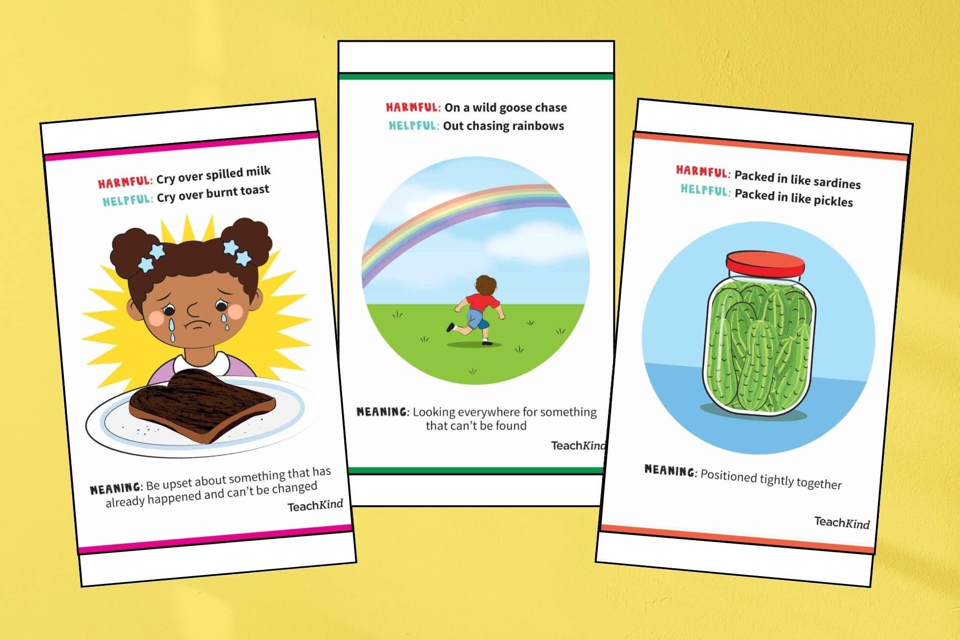 Using kind phrases like “feed two birds with one scone,” and “bring home the bagels,” helps students express the same ideas without the unkind imagery and harmful implications. Teachers are raving: