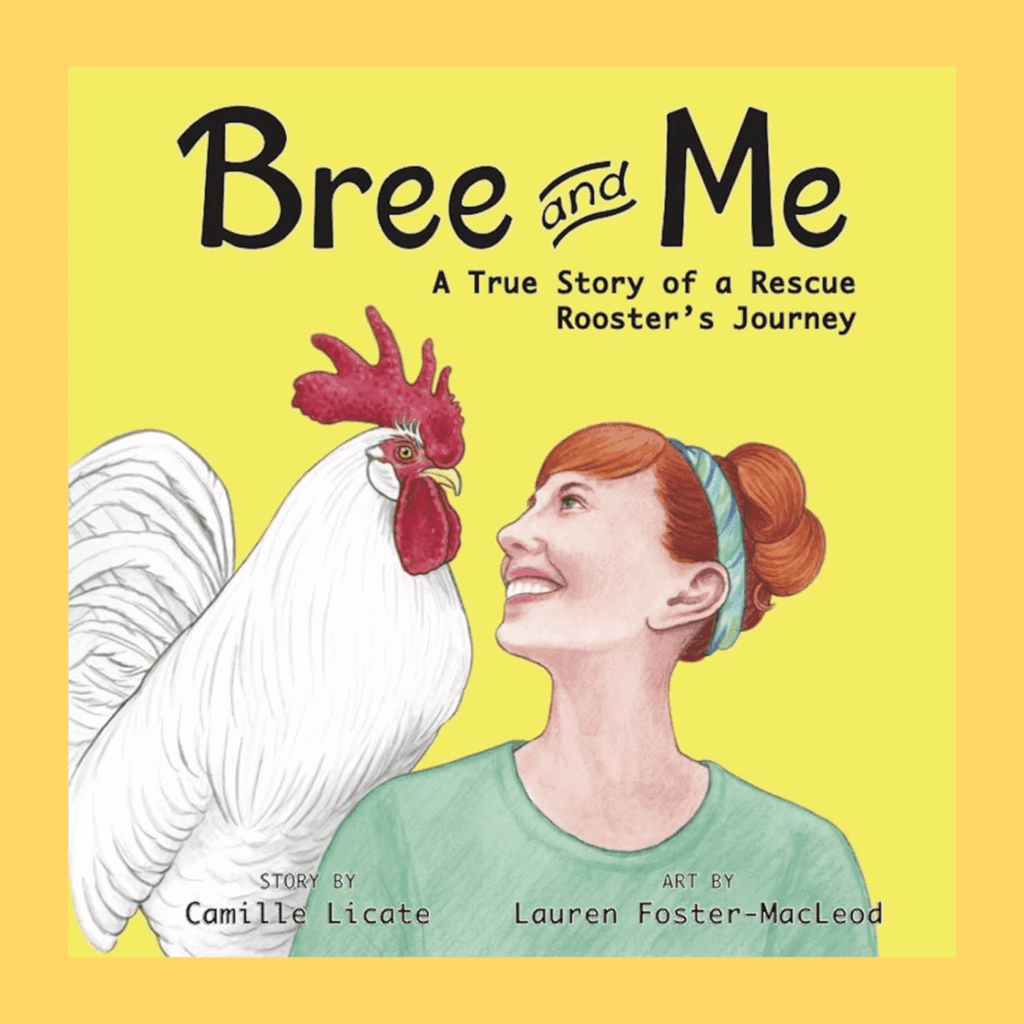 Bree and Me: A True Story of a Rescue Rooster’s Journey by Camille Licate is about Bree the rooster, his human guardian, Camille, and the journey they set off on together when they became inseparable. Bree was rescued from the streets of New York City when he was a tiny chick before Camille knew whether he was a hen or a rooster. She agreed to foster him until he was old enough to go to a sanctuary, but when she learned that Bree was a rooster and that none of the sanctuaries had room for one, she decided to adopt him. There was just one problem: Roosters weren’t welcome in New York City. So Camille decided they’d move to a rooster-friendly town, and now their mission is to spread Bree’s messages: “Bree kind to all” and “Breelieve in a better world.”