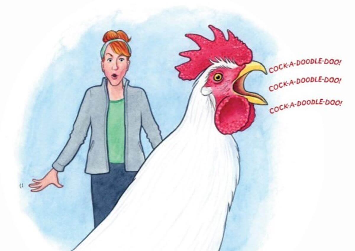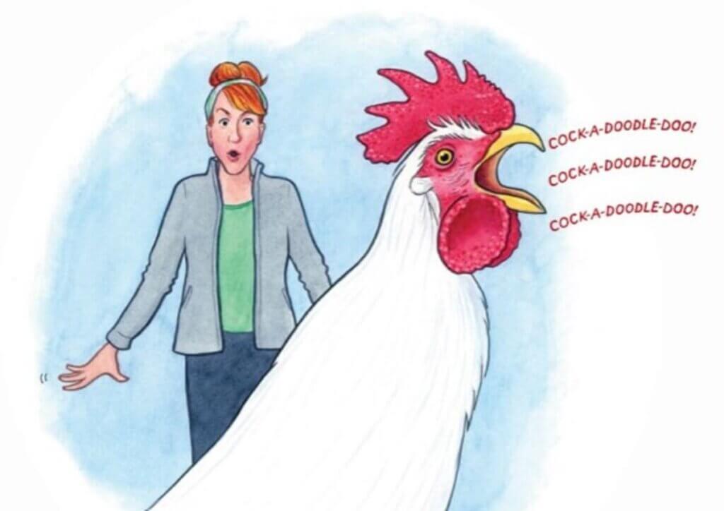 Sometimes people say animals don’t have voices, but that’s not true! They do have voices, and Bree the rooster is using his to crow—“crow” is the name for a rooster’s call—his message of kindness to all.