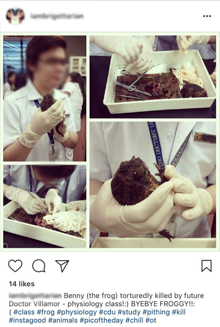 Pithing is a horrific procedure used on frogs before dissecting them while they’re still alive. The animals are immobilized by inserting a needle or probe into their brain or spinal cord to disrupt neural activity, rendering them immobile for dissection. This barbaric cruelty keeps the frog alive during dissection, enduring unbearable pain until their main artery is severed. (Click here to hear Adnan Rehmat, a teacher in Pakistan, explain to his students why a pithed frog he’s tormenting is still alive eight minutes into the dissection.) With so many state-of-the-art, cruelty-free resources available for teaching dissection, this vile practice must be relegated to the history books.