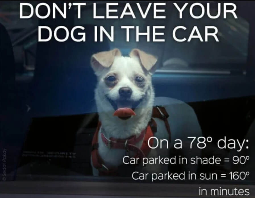 - Leaving an animal in a hot car is never acceptable. If your animal companions aren’t able to come with you to your destination, leave them at home in a comfortable temperature with plenty of toys to keep them busy until you return. Parked cars are deathtraps for dogs: On a 78-degree day, the temperature inside a parked car can soar to 100 degrees in just minutes, and on a 90-degree day, the interior temperature can reach as high as 109 degrees in less than 10 minutes. Here’s what you can do if you come across a dog in a hot car. You could save a life!