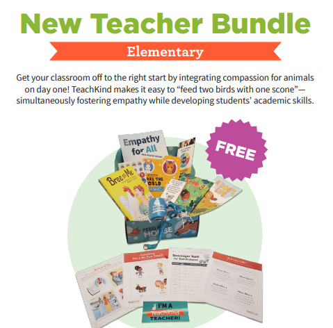 Humane education aligns naturally with how children learn. Many students feel a strong connection to animals, and lessons that build on this interest can increase engagement, encourage empathy among peers, and support a positive classroom environment. For teacher candidates, exposure to these materials during their training offers practical strategies they can use immediately when they enter their own classrooms. To support teacher preparation programs, TeachKind offers a free New Teacher Bundle curated specifically for elementary educators. The bundle includes ready‑to‑use materials that make it easy for new teachers to incorporate humane education into literacy instruction and social‑emotional learning programs without adding to their workload.