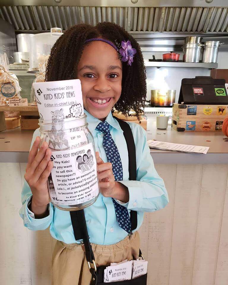 Lola has always loved animals, and by the time she was 3 years old, she knew it was wrong to eat them. While in history class learning about one of the first newspapers, she felt inspired and wanted to create her own newspaper—which is how Kind Kids’ News started. It encourages kids to be brave for animals and choose a compassionate lifestyle. Not only does a portion of the newspaper’s profits go to help animals in need, kids are also able to resell it and help animals themselves. When she’s not working on her newspaper, Lola likes to speak up for animals by going to protests and talking to her friends about going vegan.