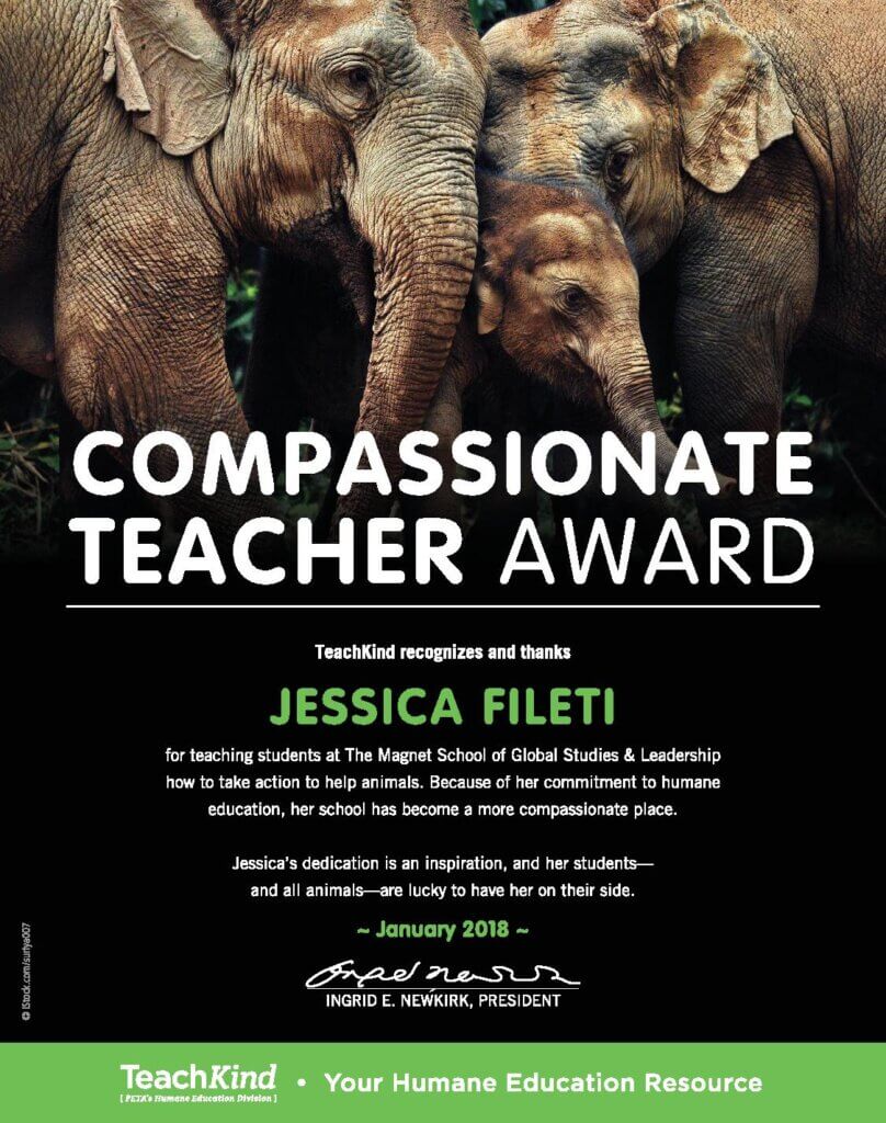 TeachKind is also sending Resource Specialist Jessica Fileti and first-grade teacher Janice McIntyre Compassionate Teacher Awards for creating this project that encourages students to explore real-world problems through project-based learning.