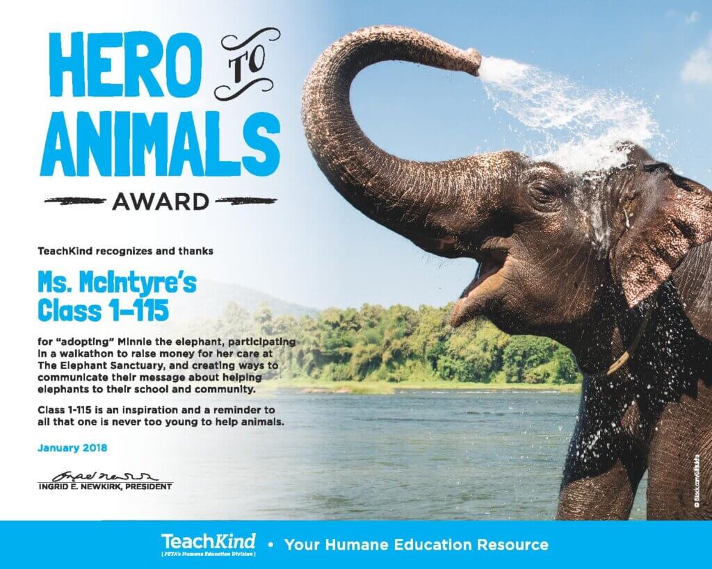 TeachKind is recognizing these mighty first graders—and their teachers—for setting a compassionate example by supporting a reputable sanctuary.