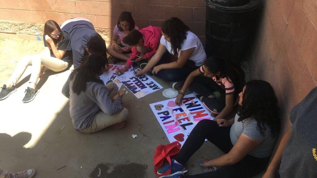 In addition to humane education, Courtney also participates in extracurricular animal rights activism. She organizes Tucson’s annual National Animal Rights Day, hosted a screening of the film What the Health (some students attended the showing with their families and received extra credit), rescues animals whenever she can, proudly wears her vegan T-shirts, and attends all sorts of demos and events in her area.