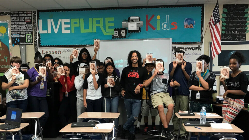 Perhaps most notably, Gavin created the highly successful after-school program called “Live Pure Kids,” which focuses on healthy living through a vegan lifestyle. Through this popular program, he has helped many students make a transition to a vegan lifestyle—in fact, about half of his students are vegetarian, and about 30 stopped eating meat this school year alone. Parents are supportive, too, and often ask him for recipes or share photos of their children eating vegan foods. He also works to ensure that his students have nutritious vegan lunch options available through Meatless Mondays (which he’s implemented in his school for three years in a row now), and he’s spent this year creating a school garden that will be ready for use during the next school year—he even helped his district pass a bill to enable the school cafeteria to use the garden’s vegetables in meals.