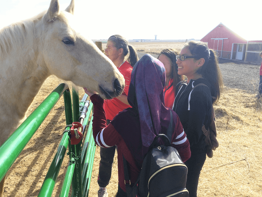 Sarah frequently works with Luvin Arms animal sanctuary and incorporates it into her classroom activities, and her students have learned all about the animals who live there. Her students created pictures and wrote poems to be displayed and auctioned off in order to raise money for the sanctuary, and several students have visited the facility themselves. Her students help her run the kids’ area at sanctuary events, which involves reading, drawing, and writing about animals as well as giving away free materials from TeachKind—including animal rights–themed stickers, comics, and coloring books.