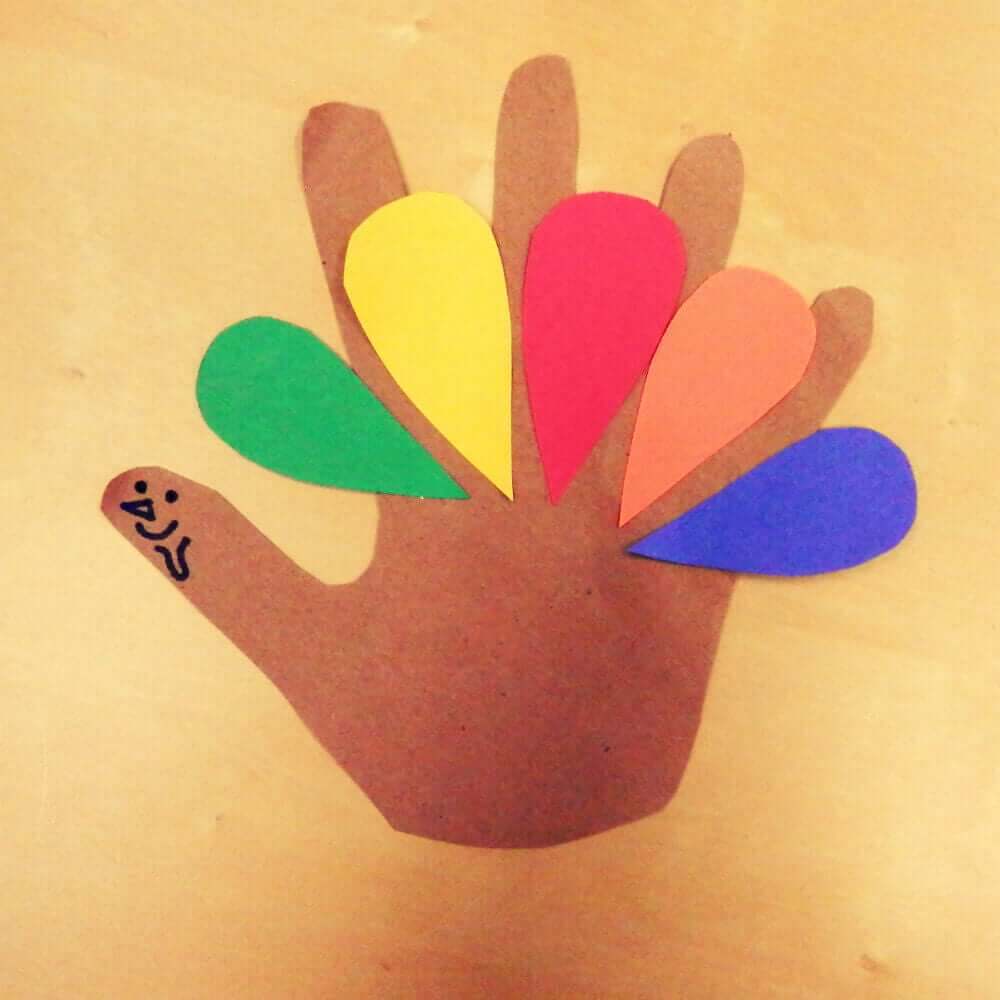 Objectives: To think about turkeys as animals rather than as Thanksgiving dinner by learning interesting facts about them and by using fine motor skills and creativity to create a unique hand-shaped one.